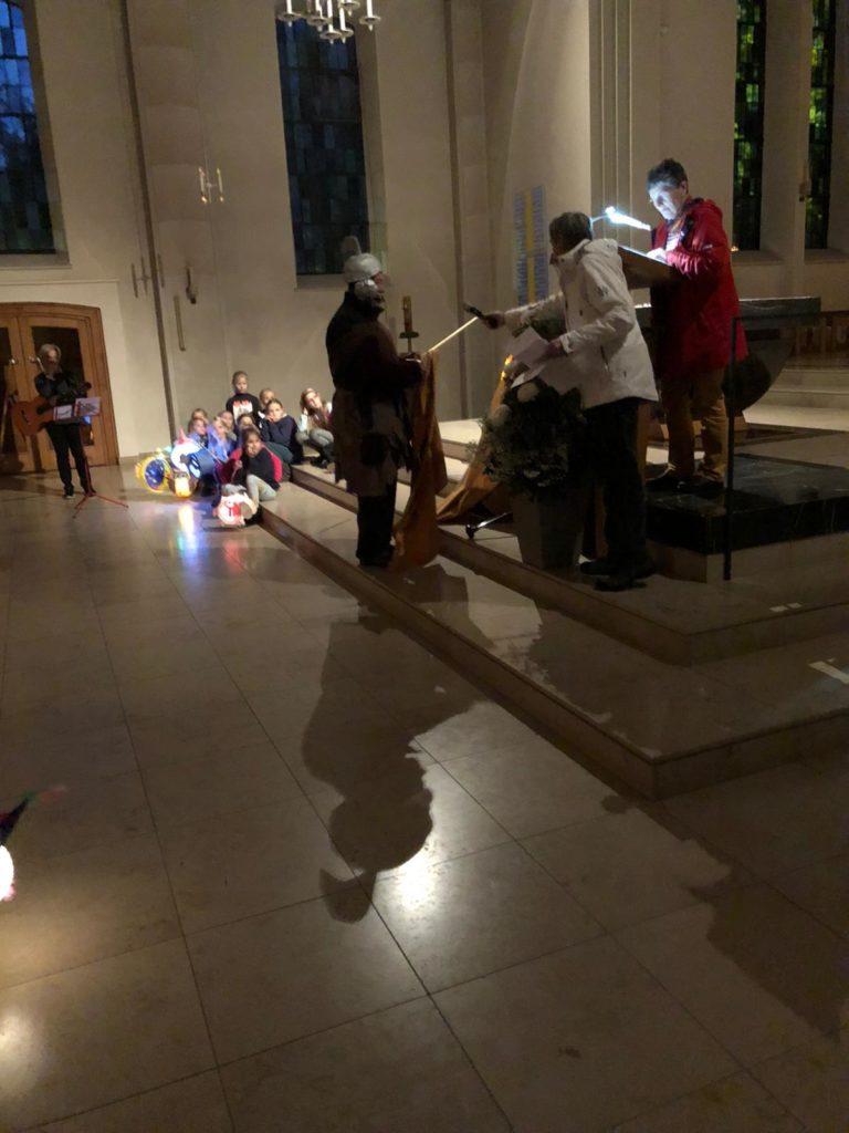 Wie in jedem Jahr waren alle Kinder und ihre Familien aus dem Ortsteil Darme zum Martinsfest am 11. November eingeladen. Gemeinsam starteten wir um 17 Uhr in der Kirche. Dort hörten wir die Geschichte des Heiligen Martins, anschließend gab es einen Laternenumzug und wir endeten auf der Rasenfläche am Lagerfeuer neben der Kirche. Hier erklang noch einmal das Martinslied und anschließend wurden Martinsbrezel geteilt. Ein großer Dank gilt dem Kinderchor der das Martinsfest in der Kirche musikalisch unterstützte und den drei Musikerinnen aus Darme, die mit ihren Blasinstrumenten den Laternenzug begleiteten.