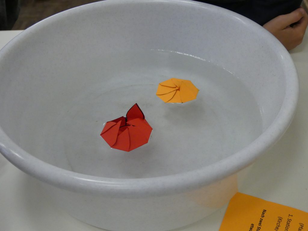 Jede Familie konnte die einzelnen Stationen ausprobieren und erleben. Zuerst gab es eine Wasserstation. Dort konnten Experimente mit Wasser gemacht werden.