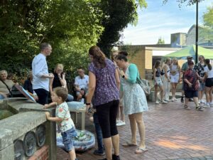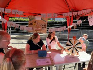Es gab aber auch viele Mitmachaktionen rund ums Heimathaus und den Kindergarten. Für die jüngsten Besucherinnen und Besucher bereitete die Gruppenleiterrunde mit ihrer traditionellen Groschenkirmes wieder jede Menge Freude. Initiiert vom Elternbeirat sorgte das Glücksrad für viele strahlende Gesichter – die glücklichen Gewinner dürfen sich nun über leckere Kuchen freuen. Auch der Edelflohmarkt kam bei den Besuchern sehr gut an.
