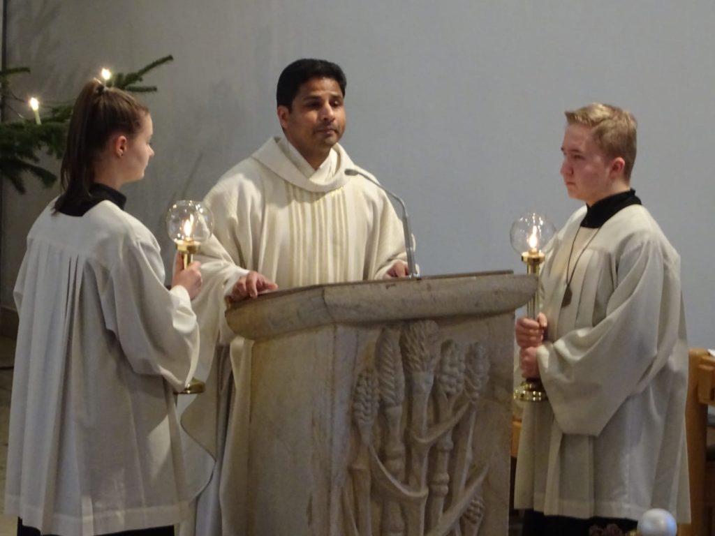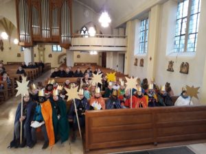 Die Kinder haben im Aussendegottesdienst von PERU berichtet und erklärt, wie man Menschen zwar nicht einfach gesund machen, aber „heilen“ kann. Im Dankgottesdienst haben wir dann erfahren, was die Könige beim Sternsingen so erlebt haben, und wir haben gelernt, dass in jedem von uns etwas Göttliches steckt und dass wir deshalb sehr sorgsam miteinander umgehen sollten. Antony hat uns dann noch berichtet, dass die Inder das sehr ernst nehmen und mit dem „alltäglichen“ Gruß „Namaste“ und den dabei am Herzen zusammen geführten Händen immer auch das Göttliche im anderen begrüßen und wertschätzen! Am Ende blieb nur noch DANKE zu sagen: